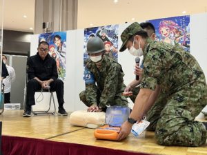 蝶野さんがマルイファミリー溝口で高津消防団・高津消防署協力のもと『AED体験イベント』を行いました